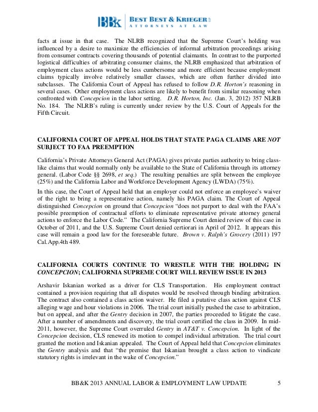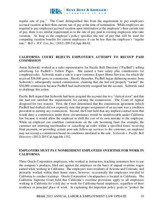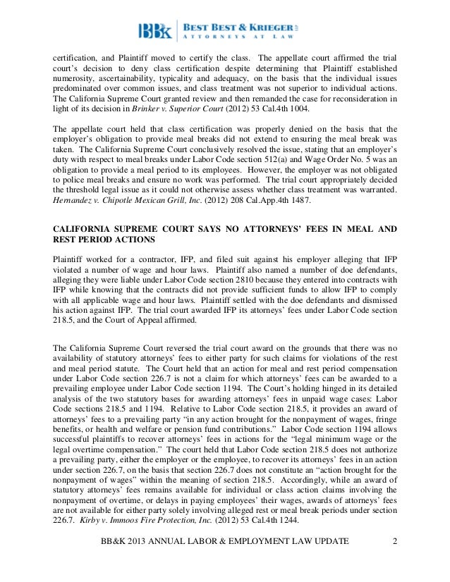 2013 Best Best Krieger Labor Employment Update Wage Hour Case